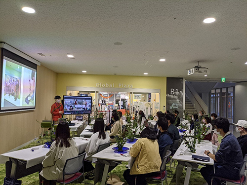一方で、華道に関する配布資料の提供、留学生と話す時間の確保、座席案内の誘導などいくつか反省する点もありました。改善すべき部分を見直し、日本文化に触れつつ外国人留学生と交流できる場を創っていきたいと思います。今回のイベントが、外国人留学生にとって日本文化を直接肌で感じ、魅力を知ってもらうきっかけの一助となれば嬉しく思います。